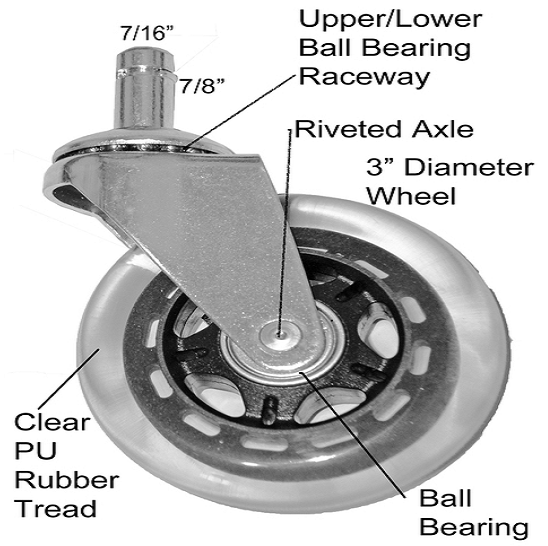 Office chair caster replacement is not rocket science. You pull out the old, broken caster (if there is one) and you snap in the replacement part. Almost anyone can do it and by using us as a resource, the time factor and the cost factor are kept to an absolute minimum. Office Replacement Parts even has replacement casters specially designed and engineered for hard surface floors as well as carpeted floors. Our customer service professionals know everything needed to replace casters and do it right.